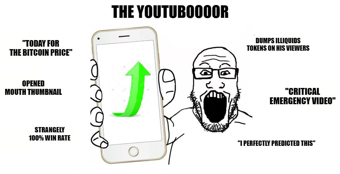 In this example, we see an attack on "crypto influencers". People with large audiences who have been known to advertise certain coins that they already hold to their viewers, and then take profits once the assets pumps in price. This meme shows how crypto people are able to spread warnings to others about the dangers of these types of influencers.